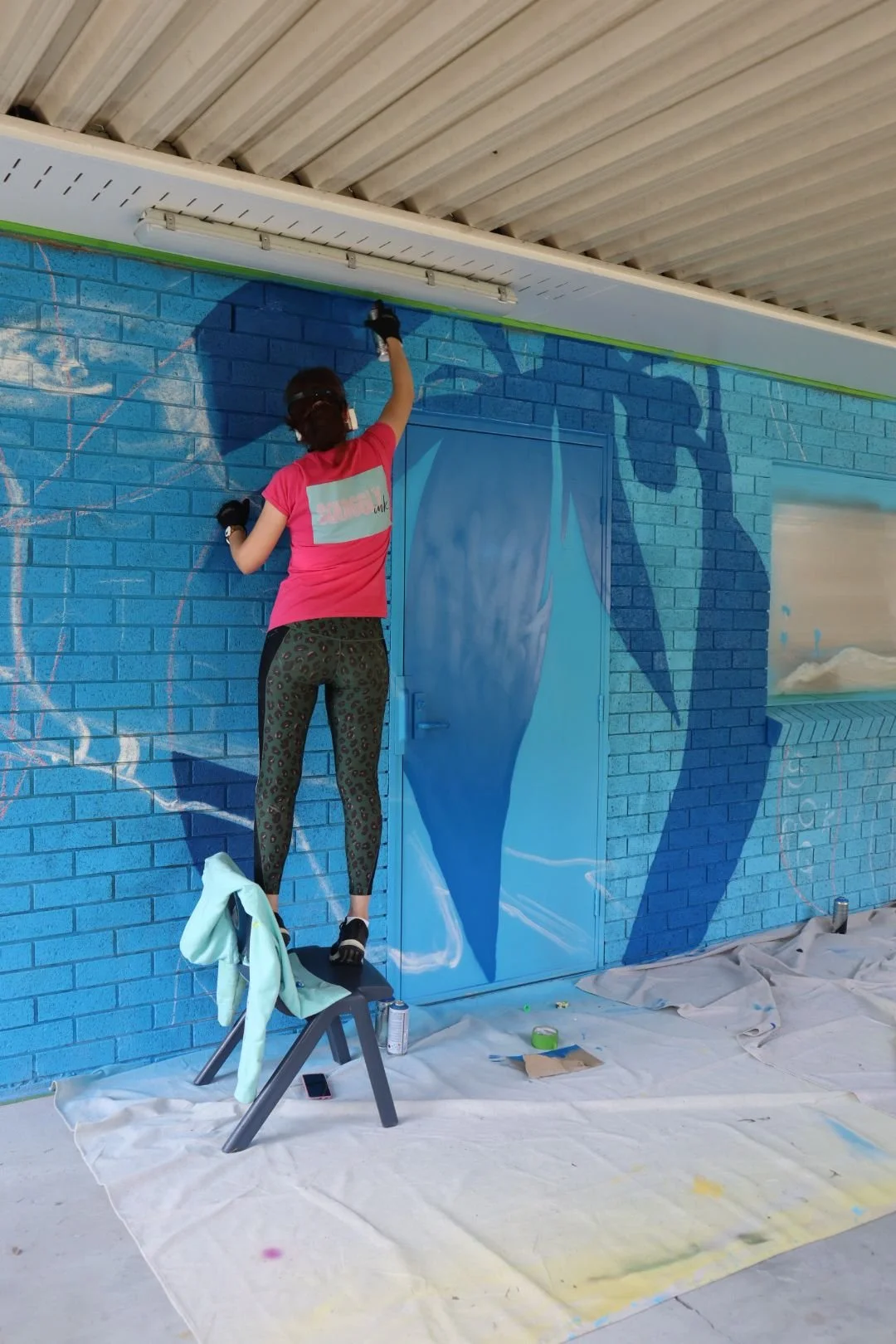 It was so educational to work through such a large-scale mural project under the guidance of an expert. Especially an external mural, on exposed brick walls, which needed cleaning, priming, painting, and sealing. The full works! I should have created a timelapse of just how much effort goes into something of that scale!